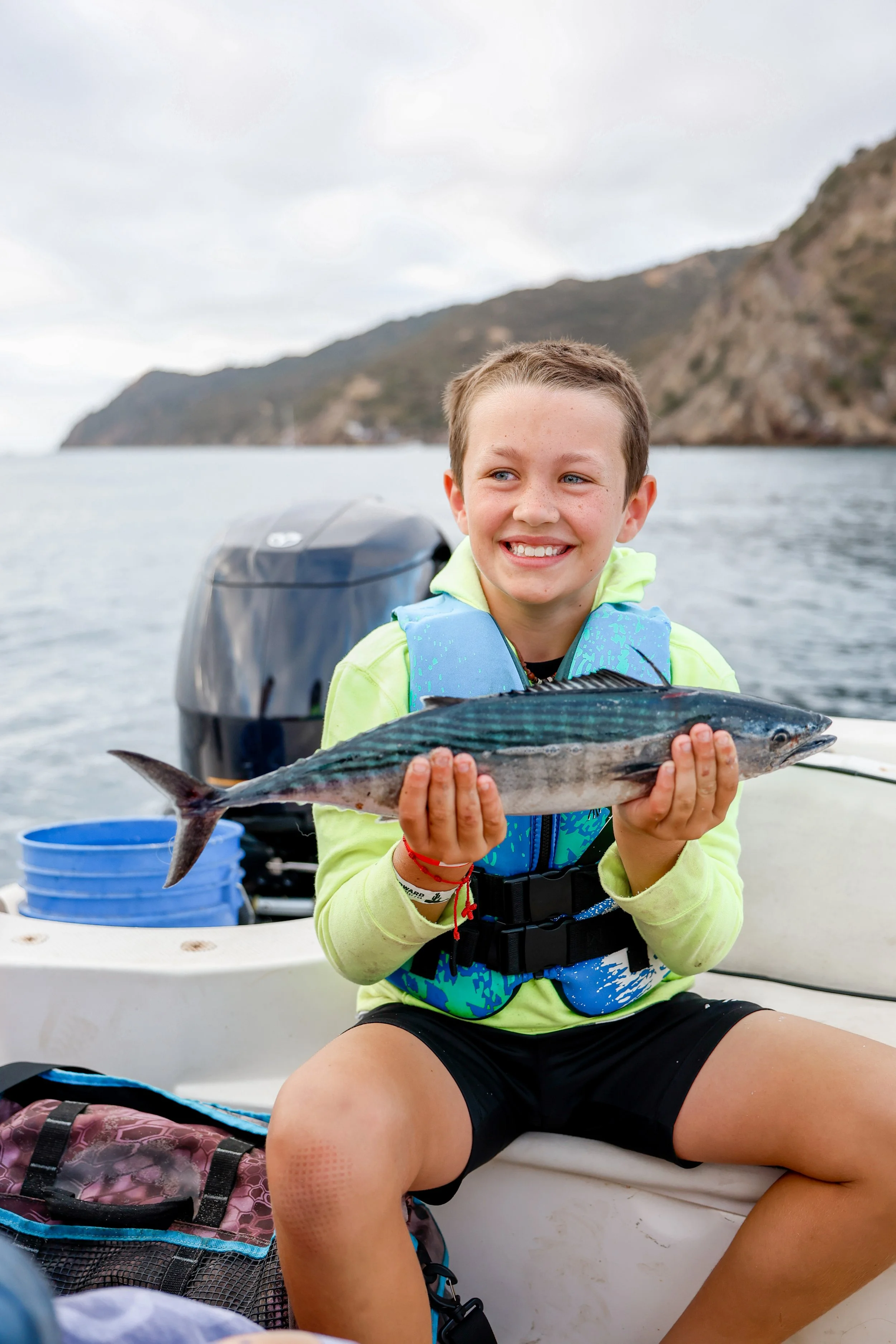 Fishing is a favorite pastime for many here at camp. We have great options for those of you who love fishing and for those who have never fished before but want to try. You can sign up for morning boat fishing with rods, reels, and tackle provided. We also provide bait and fishing equipment so you can fish off our pier independently during your free time. A valid California fishing license is required for everyone 16 years and older.