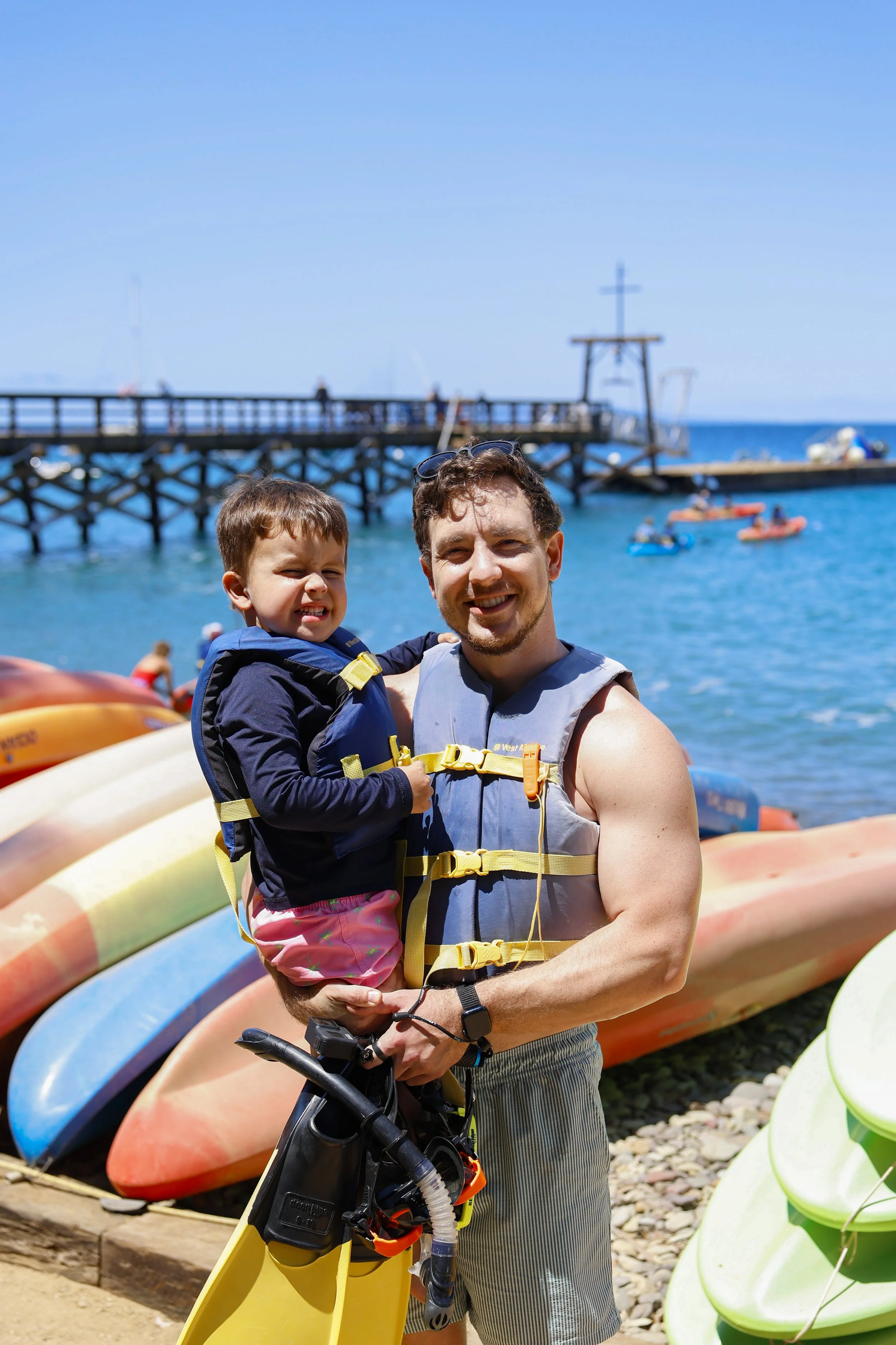 Infant life vests at the beach